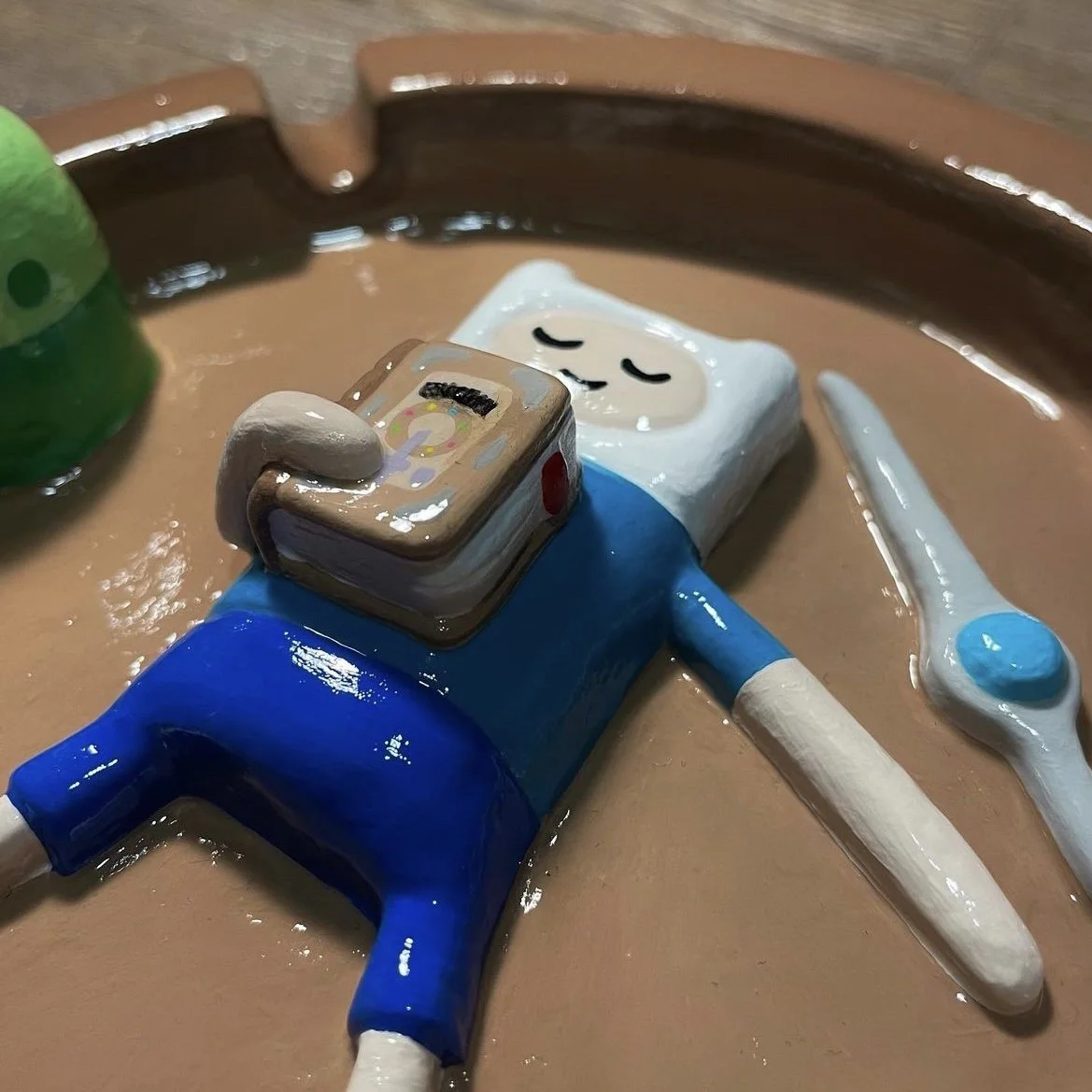 This ashtray was made with air-dry clay, painted with acrylic paint, then sealed with a triple coat glaze.