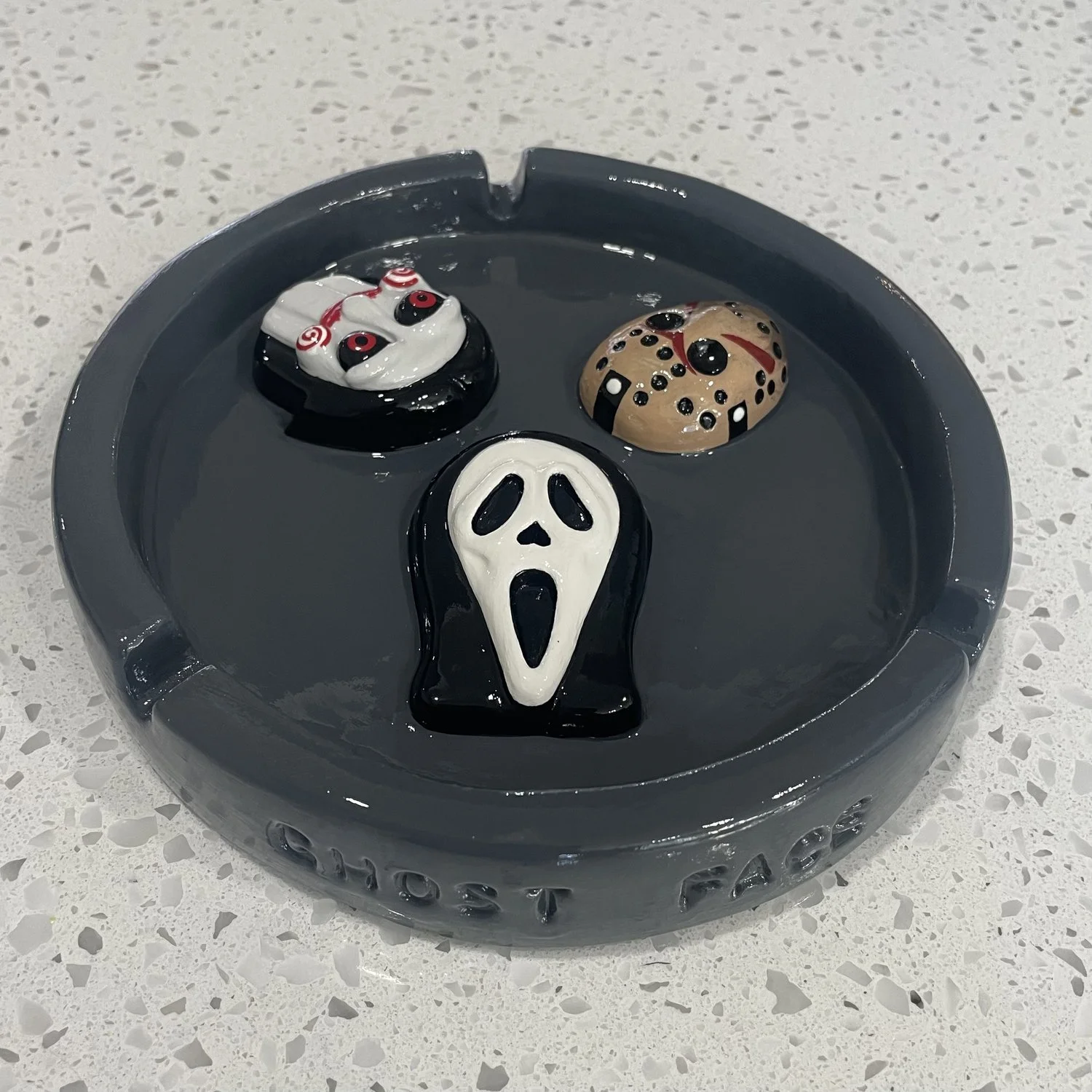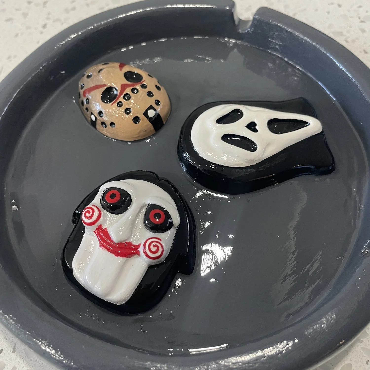 This ashtray was made with air-dry clay, painted with acrylic paint, then sealed with a triple coat glaze.
