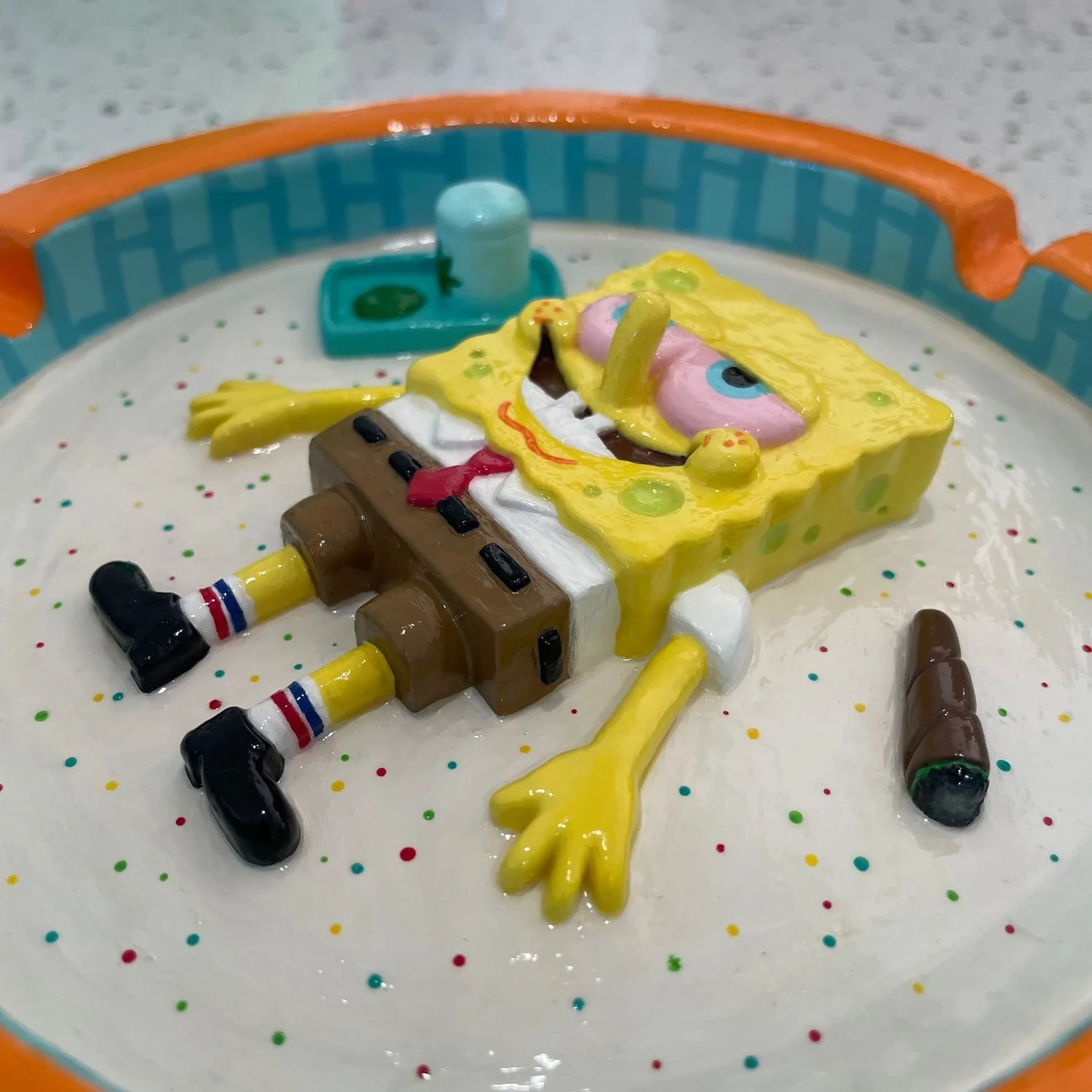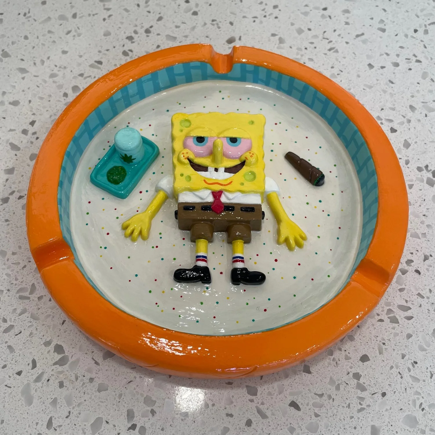 This ashtray was made with air-dry clay, painted with acrylic paint, then sealed with a gloss acrylic varnish.